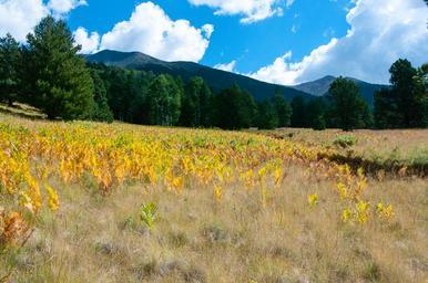 | Keywords: azt azt-34 arizona trail passage 34 azt34arizonatrailpassage34 arizona arizona national scenic trail arizonanationalscenictrail arizona trail arizonatrail arizona trail no. 87 arizonatrailno87 coconino national forest coconinonationalforest flagstaff flagstaff ranger district flagstaffrangerdistrict forest service forestservice national forest nationalforest san francisco mountain sanfranciscomountain san francisco peaks sanfranciscopeaks usfs forest hiking outdoors trail united states unitedstates outdoor field landscape serene View of Humphreys Peak, the highest of the San Francisco Peaks. The Peaks is an extinct stratovolcano in northern Arizona. On the southwestern side of the San Francisco Peaks, Arizona Trail Passage 34 drops gently from the junction of Aspen Loop, heading north across the top of Hart Prarie. The trail skirts the edge of the Kachina Peaks Wilderness, instersecting Bismarck Lake Trail approximately 2 miles from Aspen Loop. This section of trail offers fantastic views of the Humphreys and Agassiz Peaks of the San Francisco Peaks, as well as stunning vistas of Hart Prarie, Kendrick Mountain, and surrounding area. Photo by Deborah Lee Soltesz, September 2015. Source: U.S. Forest Service, Coconino National Forest. See Bismarck Lake and Aspen Loop trail descriptions for information about these Arizona Trail Passage 34 access trails on the Coconino National Forest website. View of Humphreys Peak, the highest of the San Francisco Peaks. The Peaks is an extinct stratovolcano in northern Arizona. On the southwestern side of the San Francisco Peaks, Arizona Trail Passage 34 drops gently from the junction of Aspen Loop, heading north across the top of Hart Prarie. The trail skirts the edge of the Kachina Peaks Wilderness, instersecting Bismarck Lake Trail approximately 2 miles from Aspen Loop. This section of trail offers fantastic views of the Humphreys and Agassiz Peaks of the San Francisco Peaks, as well as stunning vistas of Hart Prarie, Kendrick Mountain, and surrounding area. Photo by Deborah Lee Soltesz, September 2015. Source: U.S. Forest Service, Coconino National Forest. See Bismarck Lake and Aspen Loop trail descriptions for information about these Arizona Trail Passage 34 access trails on the Coconino National Forest website. |