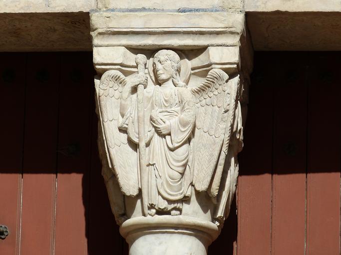 Keywords: arles cathedral facade france old town rhaeto romanic romanesque historically rhône church unesco world heritage romanesque church fig sculpture relief angel pillar