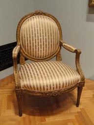 | Keywords: Armchair, about 1765, Jean-Baptsiste II Tilliard, France, carved and gilded wood - Cleveland Museum of Art - DSC08839.JPG en Exhibit in the Cleveland Museum of Art Cleveland Ohio USA Photography was permitted in the museum without restriction This artwork is old enough so that it is in the public domain Daderot 2012-09-07 15 08 11 Daderot cc0 cc0 Jean-Baptiste II Tilliard Furniture in the Cleveland Museum of Art Chairs in the United States Upholstered armchairs | ||||