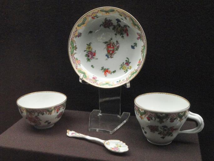 Keywords: Armorial teacup, coffee cup, spoon and saucer from the Daniel Ludlow service, c. 1775-1778, Bristol China Manufactory, hard-paste porcelain, overglaze enamels, gilding - Gardiner Museum, Toronto - DSC00763.JPG Exhibit in the Gardiner Museum Toronto Ontario Canada This artwork is in the public domain because the artist died more than 70 years ago Photography was permitted in the museum without restriction Daderot 2012-10-16 15 13 31 Daderot cc0 cc0 Bristol China Manufactory porcelain in the Gardiner Museum |