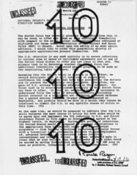 | Keywords: Arms Control Discussions - NARA - 198352.jpg Scope and content General notes 198352 Local identifier President 1981-1989 Reagan National Security Council 1981 - 1989 Ronald Reagan Library NLRR 40 Presidential Drive Simi Valley CA 93065-0600 1986-12-24 Record group Collection RR-NSC Numbered National Security Policy Papers 1981 - 1989 Record group ARC 1189 National Security Decision Directives compiled 02/25/1981 - 01/19/1989 Series ARC 198166 File unit File unit ARC Variant control numbers NAIL Control Number NLS-NSC-NSDD-251 Other versions <gallery> File Arms_Control_Discussions_-_NARA_-_198352 tif tif File Arms_Control_Discussions_-_NARA_-_198352 jpg jpg </gallery> NARA-cooperation PD-USGov Presidential Decision Directives Reagan |