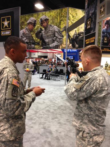 Keywords: army cyber institute armycyberinstitute u.s. military academy usmilitaryacademy west point westpoint n.y. ny cyber u.s. army usarmy association of the u.s. army associationoftheusarmy washington d.c. dc ausa arcyber u.s. army cyber command and second army usarmycybercommandandsecondarmy Officers from the Army Cyber Institute at the U.S. Military Academy at West Point, N.Y., demonstrate taking down a drone with a Cyber Capability Rifle, Oct. 12. The demonstration took place in Army Cyber's workstation in the U.S. Army exhibit at the 2015 Association of the U.S. Army annual meeting in Washington, D.C. (Photo by Bill Roche) Officers from the Army Cyber Institute at the U.S. Military Academy at West Point, N.Y., demonstrate taking down a drone with a Cyber Capability Rifle, Oct. 12. The demonstration took place in Army Cyber's workstation in the U.S. Army exhibit at the 2015 Association of the U.S. Army annual meeting in Washington, D.C. (Photo by Bill Roche) |