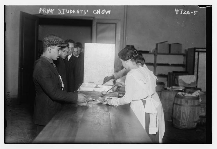 Keywords: Army students' chow (LOC) (28782079744).jpg Bain News Service publisher Army students' chow between ca 1915 and ca 1920 1 negative glass ; 5 x 7 in or smaller Notes Title from data provided by the Bain News Service on the negative Forms part of George Grantham Bain Collection Library of Congress Format Glass negatives Rights Info No known restrictions on publication Repository Library of Congress Prints and Photographs Division Washington D C 20540 USA http //hdl loc gov/loc pnp/pp print hdl loc gov/loc pnp/pp print General information about the Bain Collection is available at http //hdl loc gov/loc pnp/pp ggbain hdl loc gov/loc pnp/pp ggbain Higher resolution image is available Persistent URL http //hdl loc gov/loc pnp/ggbain 27603 hdl loc gov/loc pnp/ggbain 27603 Call Number LC-B2- 4720-5 https //www flickr com/photos/library_of_congress/28782079744/ Army students' chow LOC LOC-image ggbain 27603 https //www flickr com/people/8623220 N02 The Library of Congress http //www loc gov/rr/print/195_copr html noknown The Library of Congress Flickr Commons PD-Bain The Library of Congress https //flickr com/photos/8623220 N02/28782079744 2016-09-08 04 31 54 pd Uncategorized 2016 December 20 |