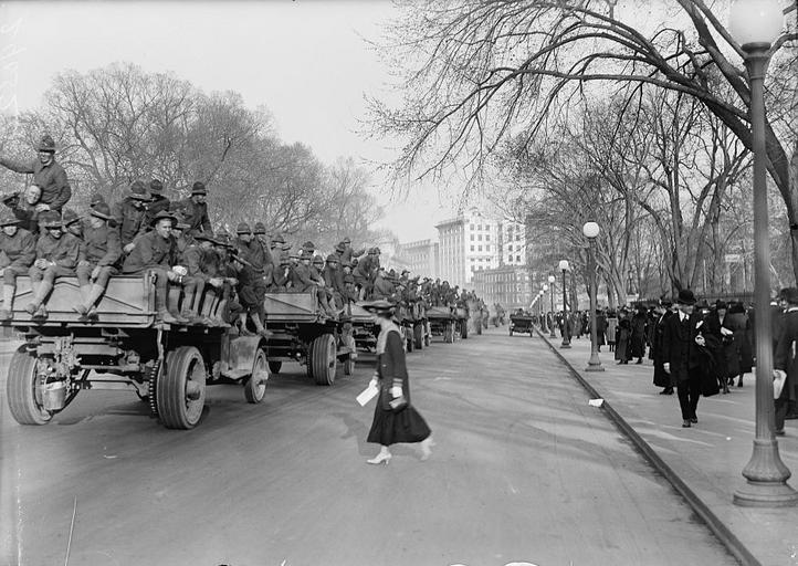 Keywords: ARMY, U.S. SOLDIERS GOING THROUGH CITY IN TRUCKS AND AUTOS.jpg en ARMY U S SOLDIERS GOING THROUGH CITY IN TRUCKS AND AUTOS 1918 1 negative; glass in 5 7 Institution Library of Congress Library of Congress Prints and Photographs Division Washington D C 20540 USA dcu object history credit line Title from unverified caption data received with the Harris Ewing Collection Gift; Harris Ewing Inc 1955 General information about the Harris Ewing Collection is available at http //hdl loc gov/loc pnp/pp hec Temp note Batch two accession number LC-DIG-hec-10547 digital file from original negative Call Number LC-H261- 24032 P P LOC-Image hec 10547 Rights Advisory No known restrictions on publication <gallery> Army_us_soldiers_going_through_city_in_trucks_and_autos_10547 tif tif </gallery> PD-Harris-Ewing Washington D C in the 1910s |