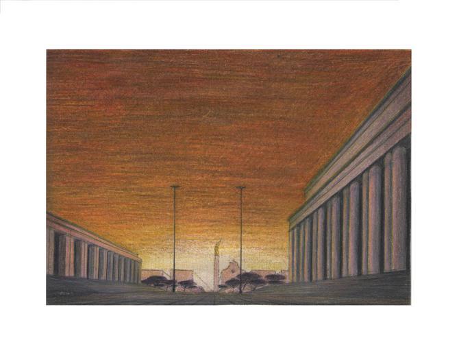 Keywords: Arnaldo Dell'Ira (1903-1943), Piazza d'Italia (Piazza dei Cinquecento).jpg it Veduta prospettica di Piazza dei Cinquecento a Roma L'edificio sulla destra con portico di colonne binate corrisponde ad uno dei progetti di Angiolo Mazzoni per la nuova facciata della Stazione Termini A sinistra l'architetto Dell'Ira propone l'inserimento di un secondo edificio che separi Piazza dei Cinquecento dalle antistanti Terme di Diocleziano verso le quali viene così ripristinato il volume della originaria muraglia perimetrale analogamente ai palazzi di Piazza Esedra che a ovest ne ricalcano l'antica pianta curvilinea Pastelli colorati su carta anni '30 del XX secolo 2015-04-12 Archivio Dell'Ira Arnaldo Dell'Ira 1903-1943 other versions Custom license marker 2015 04 12 PD-Art Uploaded with UploadWizard Arnaldo Dell'Ira |