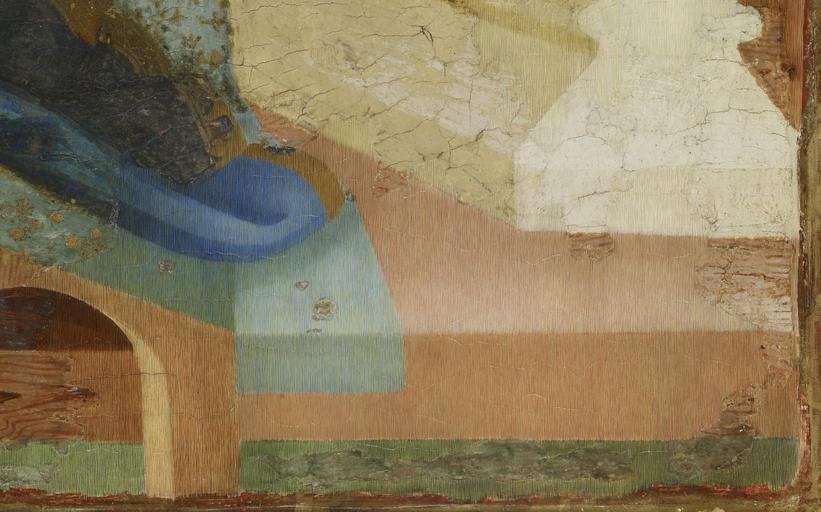 | Keywords: Arnau Bassa - Triptych with Madonna and Child with the Crucifixion and the Annunciation - Walters 37468 - A T Detail L.jpg Circle of The central scene of this altarpiece depicts the enthroned Madonna and Child flanked by angels The Christ Child holds a tiny European goldfinch a symbol of his resurrection The bird is tethered a reminder that in the 14th century such animals were kept as pets by children Angels present Mary with chalices of white flowers alluding to her purity On the left appear the Annunciation and the Crucifixion while Christ's Presentation in the Temple and the Coronation of the Virgin are on the right The delicate punch-work decoration and the slender graceful figures reveal the influence of Sienese painting Catalan artists learned the style and techniques of Italian painting by examining imported Italian works in local churches; some even traveled to Italy to perfect their craft ca 1340 1348 Medieval tempera and gold leaf on panel cm 126 8 184 9 accession number 37 468 1582 Henry Walters Baltimore 1931 mode of acquisition unknown Walters Art Museum Henry Walters Acquired by Henry Walters 1931 The International Style The Arts in Europe Around 1400 The Walters Art Gallery Baltimore 1962 place of origin Catalonia Spain Walters Art Museum license 2D Triptych with Madonna and Child with the Crucifixion and the Annunciation Media contributed by the Walters Art Museum needs category review |
