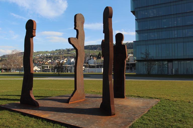 Keywords: art statues sculpture modern art human metal stainless slabs rorschach switzerland background