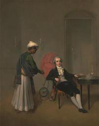 Keywords: Arthur William Devis - Portrait of a Gentleman, Possibly William Hickey, and an Indian Servant - Google Art Project.jpg ~ 1785 Bay S06 201 London 1762 London 1822 Arthur male 2336260 William Devis British 1762 - 1822 /collection/yale-center-for-british-art/artwork/portrait-of-a-gentleman-possibly-william-hickey-and-an-indian-servant-arthur-william-devis/2434762/ Arthur William Devis Artist /artist/arthur-william-devis/4132660/ 4132660 /collection/yale-center-for-british-art/ Yale Center for British Art 2305845 http //britishart yale edu/ 2/24/2012 12 26 10 AM /collection/yale-center-for-british-art/artwork/portrait-of-a-gentleman-possibly-william-hickey-and-an-indian-servant-arthur-william-devis/2434762/ 1780 ca 1785 servant Hickey William 1749 “1827 lawyer in India and memoirist Indian smoking hookah portrait letter Oil on canvas 1060 2434762 False 1790 3/24/2012 9 14 46 PM YCBA/lido-TMS-825 http //collections britishart yale edu/vufind/Record/1671094 Yale Center for British Art Paul Mellon Collection painting 1780 1800 London Creation w835 x h1060 cm ca 1785 False 0 783203125 Item portrait-of-a-gentleman-possibly-william-hickey-and-an-indian-servant-arthur-william-devis Portrait of a Gentleman Possibly William Hickey and an Indian Servant p 835 No inscription Inscription _Signed_and_Dated Not signed not dated Bay S06 201 Oil on canvas servant Hickey William 1749 “1827 lawyer in India and memoirist Indian smoking hookah portrait letter special url_id FwEbNuzN_ybKaQ PD-old-100-1923 1822 Arthur William Devis Google Art Project works by Arthur William Devis 18th-century portrait paintings in the Yale Center for British Art Hookahs in art 1780s portrait paintings 18th-century oil portraits of sitting men at full length |