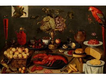 Keywords: Artus Claessens - Large still life with lobster and parrot.jpg Artwork Creator Artus Claessens 1625-1644 oil canvas cm 80 5 125 5 accession number object history credit line Sold at Hampel on 30 June 2011 Munich lot 291 https //www hampel-auctions com/a/Artus-Claessens-taetig-zw-1600-und-1644 html a 85 s 237 id 91856 acl 822501 PD-old-100 Artus Claessens 17th-century still life paintings of food Oil still-life paintings Still-life paintings with oysters Paintings of lobsters |