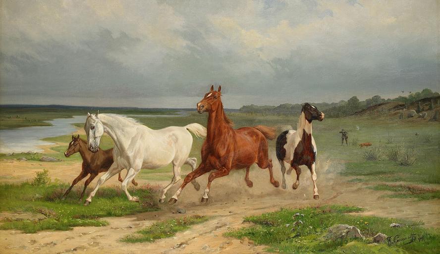 | Keywords: Arvid Fredrik Lönnroth-Flyende hästar.jpg Flyende hästar Arvid Fredrik Lönnroth 1823-1880 1877 oil canvas cm 53 90 www auktionsverket se Public domain Other versions PD-Art Arvid Fredrik Lönnroth 1877 paintings Romantic paintings of horses 19th-century paintings from Sweden Groups of horses with varying coat colors Oil paintings of horses |