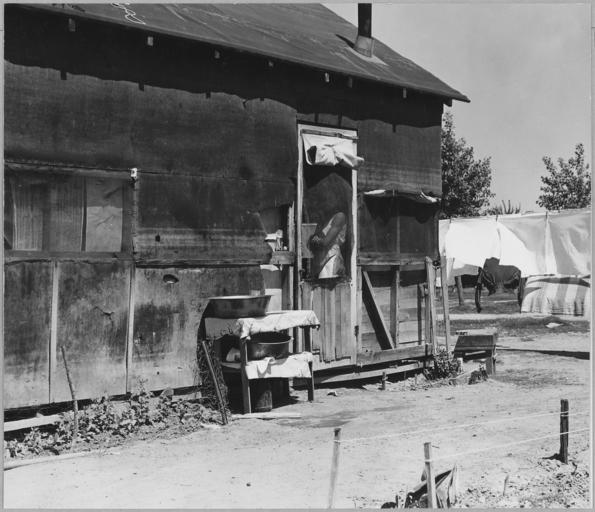 | Keywords: Arvin, Kern County, California. One in a community of shacks in subdivided orchard rented to agricul . . . - NARA - 521648.jpg Scope and content Full caption reads as follows Arvin Kern County California One in a community of shacks in subdivided orchard rented to agricultural workers as permanent homes Workers on and off relief Shacks rent from 7 to 12 per month No running water General notes 521648 Local identifier 83-G-41407 Department of Agriculture Bureau of Agricultural Economics Division of Economic Information ca 1922 - ca 1953 NARA-Author Lange Dorothea 1895-1965 Photographer 1372774 <br /> Still Picture Records Section Special Media Archives Services Division NWCS-S National Archives at College Park 8601 Adelphi Road College Park MD 20740-6001 1940-04-11 Record group Record Group 83 Records of the Bureau of Agricultural Economics 1876 - 1959 Record group ARC 412 Photographic Prints Documenting Programs and Activities of the Bureau of Agricultural Economics and Predecessor Agencies compiled ca 1922 - ca 1947 documenting the period ca 1911 - ca 1947 Series ARC 521048 File unit File unit ARC Variant control numbers NAIL Control Number NWDNS-83-G-41407 Other versions <gallery> File Arvin _Kern_County _California _One_in_a_community_of_shacks_in_subdivided_orchard_rented_to_agricul_ _ _ _-_NARA_-_521648 tif tif File Arvin _Kern_County _California _One_in_a_community_of_shacks_in_subdivided_orchard_rented_to_agricul_ _ _ _-_NARA_-_521648 jpg jpg </gallery> NARA-cooperation PD-USGov Dorothea Lange Arvin California |