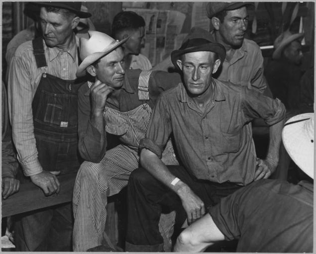 | Keywords: Arvin, Kern County, California. ... Head of rural family asking questions regarding the size of his . . . - NARA - 521653.jpg Scope and content Full caption reads as follows Arvin Kern County California Head of rural family asking questions regarding the size of his relief check This is the first check which was received under the new state law of 58 maximum relief payment General notes 521653 Local identifier 83-G-41411 Department of Agriculture Bureau of Agricultural Economics Division of Economic Information ca 1922 - ca 1953 NARA-Author Lange Dorothea 1895-1965 Photographer 1372774 <br /> Still Picture Records Section Special Media Archives Services Division NWCS-S National Archives at College Park 8601 Adelphi Road College Park MD 20740-6001 1940-04-13 Record group Record Group 83 Records of the Bureau of Agricultural Economics 1876 - 1959 Record group ARC 412 Photographic Prints Documenting Programs and Activities of the Bureau of Agricultural Economics and Predecessor Agencies compiled ca 1922 - ca 1947 documenting the period ca 1911 - ca 1947 Series ARC 521048 File unit File unit ARC Variant control numbers NAIL Control Number NWDNS-83-G-41411 Other versions <gallery> File Arvin _Kern_County _California _ _Head_of_rural_family_asking_questions_regarding_the_size_of_his_ _ _ _-_NARA_-_521653 tif tif File Arvin _Kern_County _California _ _Head_of_rural_family_asking_questions_regarding_the_size_of_his_ _ _ _-_NARA_-_521653 jpg jpg </gallery> NARA-cooperation PD-USGov Dorothea Lange People of California Arvin Arvin California 1939 in California NARA images of Kern County California Black and white photographs of sitting men Arvin Black and white photographs of California |