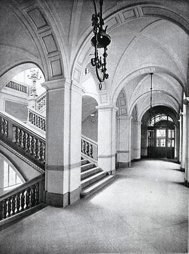 | Keywords: Arwed Rossbach und seine Bauten, Berlin 1904, Dresden, Amtsgericht, Treppenhaus, Erbaut von 1890 bis 1892.jpg en staircase of the court house at Sachsenplatz Dresden Saxony Germany; built 1888-1892 after a design by architect Arwed Roßbach Treppenhaus des Gerichtsgebäudes am Sachsenplatz in Dresden; erbaut 1888-1892 nach einem Entwurf des Architekten Arwed Roßbach Robert Bruck Arwed Roßbach und seine Bauten Berlin 1904 author 1904 public domain PD-old Amtsgericht am Sachsenplatz Dresden |