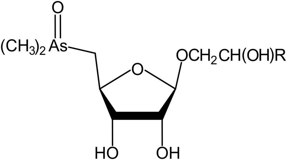 Keywords: As-Ribosides.svg en arsenic-containing natural product from J Chem Soc Perkin Trans 1 1992 1349 Inkscape Own <span style font-family Papyrus;color black >A</span><span style font-family Papyrus;color green >ngelus</span><sup> talk </sup> 2012-02-04 Other versions it image Arsenosugars |