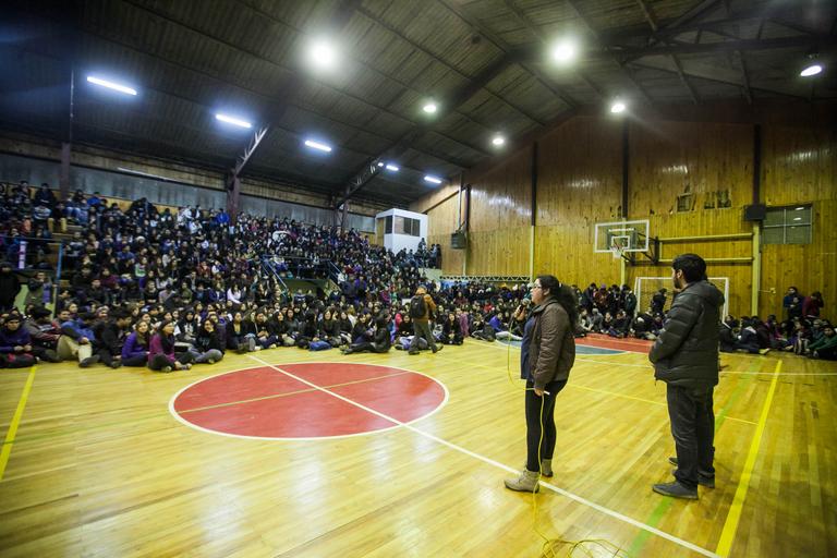 Keywords: indoor Este proceso se realizó en el contexto de una asamblea general a la que llamó la Mesa Ejecutiva de la Federación de Estudiantes de la UMAG (FEUM) y contó con una masiva asistencia de alumnos, quienes reunidos en el Gimnasio del campus central, emitieron su preferencia a favor o en contra de sumarse a esta movilización a la que ya se ha plegado más de una decena de universidades a lo largo del país. Este proceso se realizó en el contexto de una asamblea general a la que llamó la Mesa Ejecutiva de la Federación de Estudiantes de la UMAG (FEUM) y contó con una masiva asistencia de alumnos, quienes reunidos en el Gimnasio del campus central, emitieron su preferencia a favor o en contra de sumarse a esta movilización a la que ya se ha plegado más de una decena de universidades a lo largo del país.