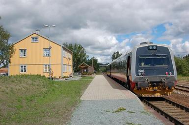 Keywords: Åsen stasjon 1.jpg Åsen Station on Nordlansbanen in Levanger Norway; Norges Statsbaner type 92 diesel multiple unit commuter train own Alasdair McLellan 2008-06-26 63 60928 11 052026 Åsen stasjon NSB type 92