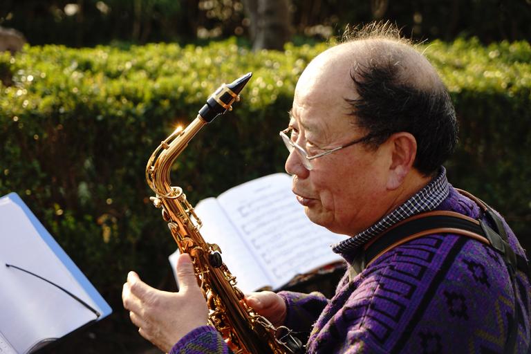 Keywords: asia china men park music the band saxophone