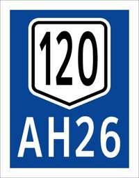 | Keywords: Asian Highway 26 (120) sign.svg Route sign for the Pan-Philippine Highway/AH26 on the Marcos Road/Radial Road 10 and Roxas Boulevard/Radial Road 1 segments numbered as Highway 120 by the Department of Public Works and Highways own April 2 2015 9 06 PM GMT+8 TagaSanPedroAko Created with Inkscape Diagrams of route signs of Asian Highway Network |