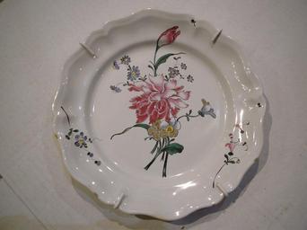 Keywords: Assiette hannong2.JPG assiette en faïence de Strasbourg Joseph hannong 1762-1775 collection privée Musée du pain d'épice de Gertwiller « œuvre personnelle » 2006 Tomtchik Musée du pain d'épice de Gertwiller Ceramic plates in France Porcelain by Joseph Hannong Porcelain plates flowers on porcelain |