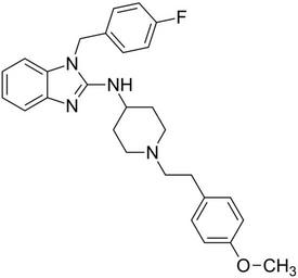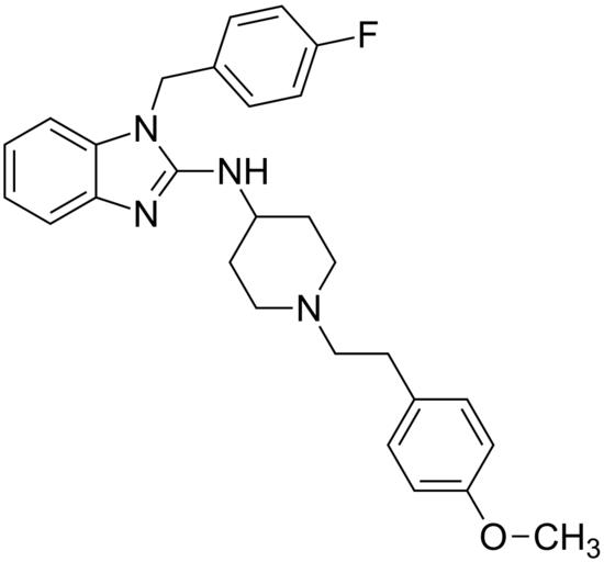 Keywords: Astemizole 200.svg validSVG Structure of 1- 4-fluorobenzyl -N- 1- 4-methoxyphenethyl piperidin-4-yl -1H-benzodimidazol-2-amine Own 2014-04-20 Emeldir <span class signature-talk >talk</span> Chemical structure verified https //upload wikimedia org/wikipedia/commons/e/e1/Astemizole_200 svg 1S/C28H31FN4O/c1-34-25-12-8-21 9-13-25 14-17-32-18-15-24 16-19-32 30-28-31-26-4-2-3-5-27 26 33 28 20-22-6-10-23 29 11-7-22/h2-13 24H 14-20H2 1H3 H 30 31 GXDALQBWZGODGZ-UHFFFAOYSA-N 68844-77-9 Synonyms <small><nowiki>1- 4-Fluorophenyl -methyl -N- 1- 2- 4-methoxyphenyl ethyl -4-piperidinyl -1H-benzimidazol-2-amine 1- 4-fluorophenyl -methyl -N- 1- 2- 4-methoxyphenyl ethyl -4-piperidinyl -1H-benzimidazol-2-amine 1- 4-Fluorobenzyl -2- 1- 4-methoxyphenethyl -4-piperidylamino benzimidazole 1- 4-Fluorobenzyl -N- 1- 4-methoxyphenethyl piperidin-4-yl -1H-benzodimidazol-2-amine 1- p-Fluorobenzyl -2-1- p-methoxyphenethyl -4-piperidylaminobenzimidazole 1-4-Fluorobenzyl-2-1-4-methoxyphenethylpiperidin-4-ylaminobenzimidazole Alermizol Astemison Astemitsoli Astemizolas Astemizole Astemizolum Astemizolum INN-Latin Astémizole Asztemizol BRN 4830190 CCRIS 7595 Hestazol Hismanal Histamen Histaminos HSDB 6799 Kelp Laridal Metodih MJD-30 Novo-mastizol A Paralergin R 42512 R-43512 Retolen Wareezol</nowiki></small> PD-chem Astemizole |