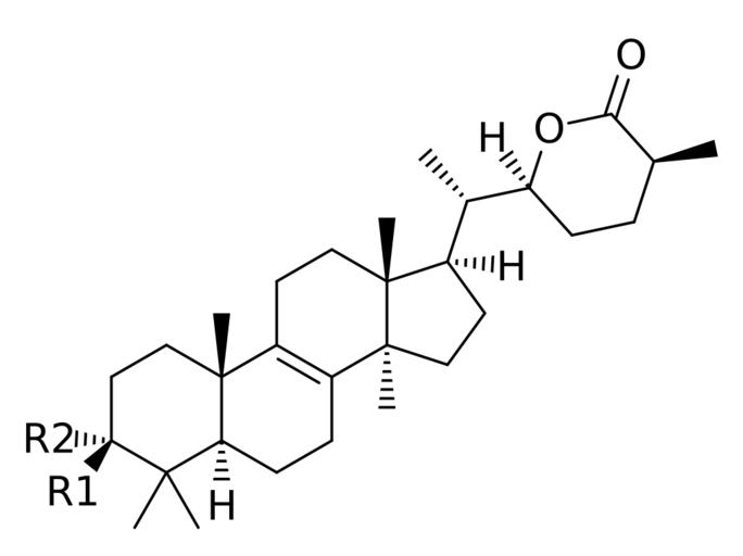 Keywords: Astrahygrols.svg Chemical structure of astrahygrols <br>Astrahygrol R1 OH R2 H<br>3-epi-Astrahygrol R1 H R2 OH<br>Astrahygrone R1 R2 O Own 18 44 17 January 2016 UTC Ed Edgar181 Astrahygrols