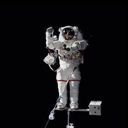 Keywords: astronaut spacewalk space spacecraft tools suit pack tether floating job maintenance extravehicular activity eva