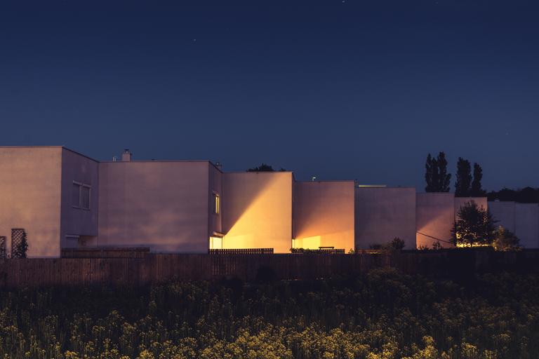 Keywords: at night night picture night lights in the evening lighting blue storey house architecture building lights row house