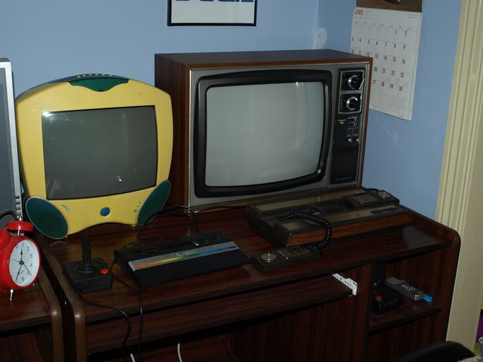 Keywords: Atari 2600jr and Intellivision.jpg en This picture shows two popular retro video game consoles the Atari 2600jr and the Intellivision Both are in very mediocre condition 2011-04-25 own Matthew Paul Argall cc-zero Uploaded with UploadWizard Atari 2600 Intellivision |