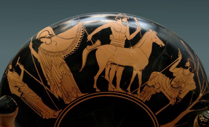 | Keywords: Athena workshop sculptor Staatliche Antikensammlungen 2650.jpg Athena mit Ägis besucht als Göttin der Künste die Werkstatt eines Bildhaueur der modelliert ein Pferdebild aus Marmor Epeios und ein Modell des Trojanisches Pferd Seite A von einer attischen rotfigurigen Kylix Athena wearing aegis visiting as goddess of art the workshop of a sculptor working on a marble horse Epeius on a model of the Trojan horse Side A of an Attic red-figure kylix Athéna à l'égide visitant comme patronne des arts l'atelier d'un sculpteur travaillant sur un cheval en marbre Épéios sur un modèle du cheval de Troie Face A d'un kylix attique à figures rouges ca 480 BC cm 12 44 Museum Staatliche Antikensammlungen Room 3 Beazley ARV2 401 2 object history ProvenanceEvent excavation Vulci credit line accession number Inv 2650 J 400 User Bibi Saint-Pol own work 2007-02-10 other versions Athena in ancient Greek pottery Epeius in ancient Greek pottery Trojan horse in ancient Greek pottery Ancient Greek sculptures Kylixes Foundry Painter Red-figure pottery in the Staatliche Antikensammlungen Staatliche Antikensammlungen - Room 3 480s BC pottery Ancient Greek pottery from Vulci |