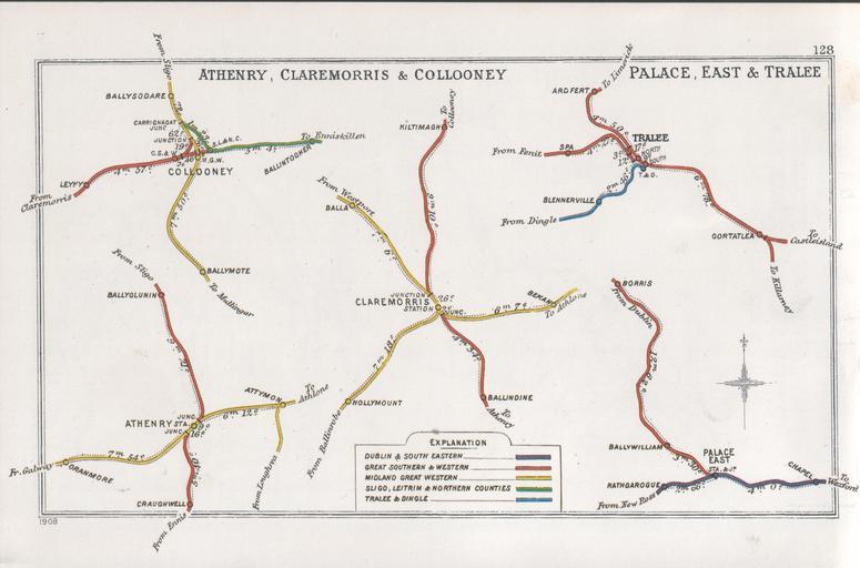 Keywords: Athenry, Claremorris & Collooney Palace, east & Tralee RJD 128.jpg Railway Junctions in Athenry Claremorris Collooney; Palace East Tralee pre grouping Railway Junction Diagram and 1909 1914 Railway Clearing House Author died more than 70 years ago - public domain PD-old Railways Junctions Diagram 1914 121-158 128 County Carlow RJD 1914 128 County Galway RJD 1914 128 County Kerry RJD 1914 128 County Mayo RJD 1914 128 County Sligo RJD 1914 128 County Wexford RJD 1914 128 Transport in Ireland |
