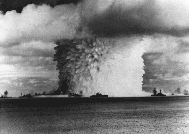 Keywords: Atombombentest Crossroads-Baker.jpg Kernwaffentest Crossroads-Baker im Bikini-Atoll Zehn Sekunden nach der Zündung der Atombombe wurde dieses Bild von der Insel Eneu aufgenommen Vorne Links ist der amerikanische Flugzeugträger USS Saratoga CV-3 mit leichter Schlagseite zu sehen 8 der 71 Schiffe wurden durch die Explosion versenkt darunter auch die USS Saratoga http //memory loc gov/master/pnp/cph/3b10000/3b13000/3b13500/3b13566u tif Library of Congress U S Army Photographic Signal Corps 1946-07-25 http //nuclearweaponarchive org/Usa/Tests/Crossrd html See below PD-USGov This image was copied from wikipedia de wikitable border 1 date/time username edit summary -- 01 42 8 Jan 2006 Denniss -- 18 01 4 Okt 2004 W wolny Bildbeschreibung -- 17 54 4 Okt 2004 W wolny Crossroads Baker USS New York BB-34 USS Saratoga CV-3 ImageNote 1 369 386 101 33 800 565 2 USS Saratoga ImageNoteEnd 1 ImageNote 2 639 373 76 41 800 565 2 USS New York ImageNoteEnd 2 |