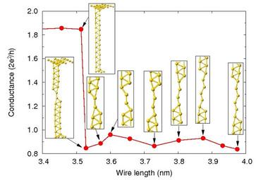 | Keywords: Atomic-Scale; Instrument (5885544274).jpg A quantum-mechanics-based simulation demonstrates how a new NIST instrument can delicately pull a chain of atoms apart The chart records quantum jumps in conductivity as a gold contact is stretched 0 6 nanometer The junction transitions from a 2-dimensional structure to a one-dimensional single-atom chain with a corresponding drop in conductivity Following the last point at a wire length of 3 97 nm the chain broke Credit Tavazza NIST Disclaimer Any mention of commercial products within NIST web pages is for information only; it does not imply recommendation or endorsement by NIST Use of NIST Information These World Wide Web pages are provided as a public service by the National Institute of Standards and Technology NIST With the exception of material marked as copyrighted information presented on these pages is considered public information and may be distributed or copied Use of appropriate byline/photo/image credits is requested https //www flickr com/photos/usnistgov/5885544274/ Atomic-Scale; Instrument 2010-03-30 13 59 https //www flickr com/people/63059536 N06 National Institute of Standards and Technology PD-USGov National Institute of Standards and Technology https //flickr com/photos/63059536 N06/5885544274 2016-09-07 02 31 13 United States Government Work Uncategorized 2016 December 20 |