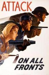 Keywords: Attack on All Fronts.jpg en Canadian Propaganda from Second World War by the Wartime Information Board 1943 Canadian War Museum Wartime Information Board other versions cc-zero Uploaded with UploadWizard World War II posters from Canada