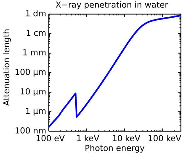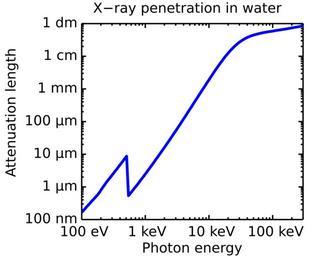 Keywords: Attenuation.svg en The attenuation length of x-rays in water as function of photon energy 2012-11-07 16 46 52 own Ulflund Data for the soft X-ray part energies below 5 keV is taken from CXRO http //henke lbl gov/optical_constants/ Center for X-ray optics at Lawrence Berkeley National Laboratory Data for the hard X-ray part energies above 5 keV is taken NIST http //www nist gov/pml/data/xraycoef/index cfm National Institute of Standards and Technology cc-zero Uploaded with UploadWizard Radar principles X-rays |