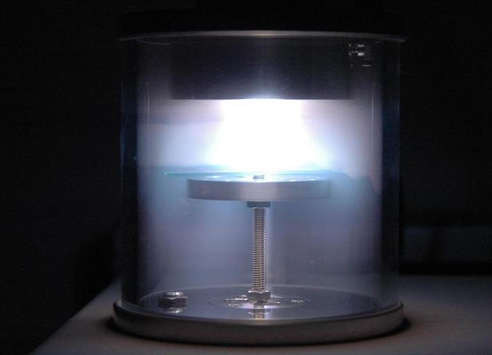 | Keywords: Au sputtering light.JPG 電子顕微鏡試料 成用スパッタによる金の蒸 PVD ・スパッタ槽の直径は約150mm・ガスとして 常の大気を減 して使用 Plasma discharge visible inside a sputter chamber being used to deposit gold atoms onto an electron microscope sample by physical vapour deposition PVD The sputter chamber is 150 mm in diameter and the sputter gas consists of air at low pressure Own 2007-07-16 GcG jawp PD Semiconductor growth Sputtering | ||||