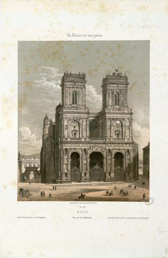 Keywords: Auch - Vue de la Cathédrale - Fonds Ancely - B315556101 A MERCEREAU 7 015.jpg Impression en 3 coul par Frick frères à Paris Fait partie d'un ensemble de recueils de lithographies de Mercereau composés de lithographies provenant de La France de nos jours vaste suite publiée par livraisons de 1853 à 1876 et comprenant 475 planches en deux tirages l'un à deux teintes noir et bistre l'autre en couleurs Les libraires ont réuni ces planches en albums de composition variable quant au nombre de planches et aux dessinateurs Asselineau Mercereau Maurice Deroy etc Un titre Les Pyrénées par Ch Mercereau; Bagnères-de-Luchon par Ch Mercereau était frappé sur le plat supérieur de la reliure de l'album ainsi que le nom du Libraire pour lequel il était réalisé La plupart des recueils de ces planches pyrénéennes portent le nom de Sajous libraire à Bagnères-de-Luchon Pl 1 à 18 numérotées de 370 à 386 Pl 374 pl 5 et 6 en double -- Pl 19 20 et 21 numérotées respectivement 407 415 et 418 Ces trois pl ont été dessinées et lithographiées par Asselineau -- Pl 22 23 et 24 numérotées 438 439 et 440 -- Pl 22 lith par Aubrun -- Pl 25 numérotée 441 -- Pl 26 à 40 numérotées de 327 à 341 -- Pl 41 à 46 numérotées de 363 à 368 -- Pl 47 numérotée 369 -- Pl 48 num 292 -- Pl 49 et 50 num 264 et 265 -- Pl 51 et 52 num 268 et 269 -- Pl 53 à 55 num de 293 à 295 -- Pl 56 num 300 -- Pl 57 à 59 num de 307 à 309 -- Pl 60 à 70 num de 316 à 326 -- Pl 71 num 63 dessin et lith d'Asselineau imprimerie Destouches -- Pl 72 et 73 num 87 et 88 dessin et lith d'Asselineau imprimerie Destouches -- Pl 74 num 124 signée Lebreton éditée chez Lalonde à Paris et imprimée chez Becquet frères à Paris -- Pl 75 num 161 dessin et litho d'Asselineau imprimerie Destouches --Pl 76 à 78 num de 207 à 209 -- Pl 79 à 81 num de 211 à 213 -- Pl 82 num 220 dessin et lith de Maurice imprimerie Destouches -- Pl 83 à 86 num de 226 à 229 -- Pl 87 et 88 num 234 et 235 -- Pl 89 à 91 num de 273 à 275 -- Pl 92 et 93 num 290 et 291 Pièces jointes 6 pl sépia dont certaines sont des doubles du recueil de Mercereau Les cinq premières planches sont numérotées respectivement 318 321 324 331 386 La dernière planche n'est pas extraite de La France de nos jours mais de L'Espagne pittoresque et monumentale Ces six planches sont signées Mercereau éditées chez Sinnet et imprimées chez Frick frères Ancely René 1876 - 1966 Possesseur fre public domain domaine public B315556101_A_MERCEREAU_7_015 jpg image/jpeg 1 f de pl lithogr ; 41 5 cm Frick frères Imprimeur Sinnet F Éditeur http //numerique bibliotheque toulouse fr/collect/general/index/assoc//ark /74899/B315556101_A_MERCEREAU_7_015 dir/B315556101_A_MERCEREAU_7_015 jpg Bibliothèque municipale de Toulouse A-MERCEREAU 7-15 Creator Charles Mercereau http //catalogues toulouse fr/web2/tramp2 exe/do_keyword_search/log_in setting_key BMT1 servers 1home query p001639 St Jean-de-Luz intérieur de l'Eglise St Jean-de-Luz le Château de l'Infante Biarritz Vue générale prise du Phare Château de Mauvesin près Bagnères-de-Bigorre Hautes Pyrénées Bagnères de Bigorre Hautes Pyrénées - Intérieur de l'Eglise des Carmes en couleurs Bagnères de Bigorre Hautes Pyrénées - Intérieur de l'Eglise des Carmes Bagnères-de-Bigorre - Eglise et couvent des Carmes Bagnères-de-Bigorre Hautes-Pyrénées - Tour des Jacobins Cascade et Pont de Magenta Vallée de l'Esponne Hautes Pyrénées Cascade de Trémes-Aïgues Vallée de Grip Hautes Pyrénées St Sauveur Hautes Pyrénées - Le Pont Napoléon Bayonne - Eglise St André Arreau et la Vallée d'Aure Hautes Pyrénées - Vue prise au dessus de la route du Col d'Aspin Auch - Vue prise sur les bords du Gers Auch - Intérieur de la Cathédrale Bagnères-de-Bigorre - Vue Générale prise de la Fontaine ferrugineuse Eaux-Bonnes Basses-Pyrénées - L'établissement Thermal et la Chapelle Nantes - Vue de l'Eglise Ste Croix Le Croisic - Plage des Baigneurs et Etablissement de Bains Le Folgoët - Vue de l'Eglise Brèche de Roland prise de Gèdres Hautes Pyrénées Chapelle du couvent de Pouëlahun i e Pouey Lahun - Vallée d'Azun Hautes Pyrénées Eglise des Templiers à Luz Le Pont de Scia - Route de Luz à Gavarnie Hautes-Pyrénées Vue de l'établissement de la Raillière près Cauterets Hautes-Pyrénées Vue générale de Cauterets prise du Mamelon Vert Hautes-Pyrénées Vue du Fort de Lourdes Hautes-Pyrénées Vue d'Argelès-de-Bigorre Hautes-Pyrénées Vue de St Sauveur Hautes-Pyrénées Le Pas de l'Echelle Route de Gavarnie Hautes-Pyrénées Fond de la Vallée d'Argelès prise de la terrasse de St Savin Hautes-Pyrénées Place Grammont à Pau Basses-Pyrénées Vue générale des Eaux-Bonnes Basses-Pyrénées Barèges et la Vallée du Bastan Hautes-Pyrénées Chute supérieure du Pont d'Espagne Hautes-Pyrénées La grotte miraculeuse à Lourdes Hautes-Pyrénées Eglise de Bétharram et Pont de Lestelle Basses Pyrénées Cascade du Cerizet Près Cauterets Hautes-Pyrénées Pic du Midi d'Ossau 2885m Basses Pyrénées - Vue prise du 3e plateau de Bious-Artigues Pau - Vue prise de la terrasse du Château Toulouse - Cloître du Musée Galerie du Moyen-Age Pau - Vue du Château prise du Parc Toulouse - Cloître du Musée et Clocher des Augustins Toulouse - La maison de pierre fragment de la façade Toulouse - Intérieur de St Sernin St Jean-de-Luz Fort du Socoa Toulouse - Vue du Capitole Bordeaux Vue de la Porte du Caillau i e Cailhau Bordeaux Porte de la grosse Cloche Bordeaux Vue des Quinconces Bordeaux - Vue de la Tour et de l'Eglise de St Michel Toulouse - Vue du Pont de pierre prise du Quai de Brienne Toulouse - Abside de l'Eglise de St Sernin de l'an 1097 Toulouse - Choeur de la Cathédrale St Etienne Rouen - Hôtel de Bourgtheroulde Biarritz - Vue des Bains Napoléon et du Casino Biarritz - Vue des Bains du Port Vieux Biarritz - Vue de l'Entrée de la Ville à l'arrivée de Bayonne Le Lac Bleu Hautes-Pyrénées