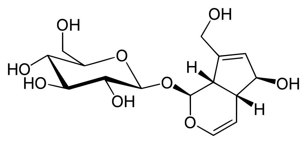 Keywords: Aucubin skeletal.svg Aucubin Own 2008-05-16 Yikrazuul Glycosides Iridoids