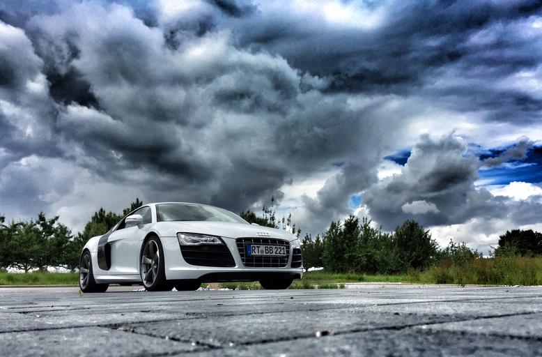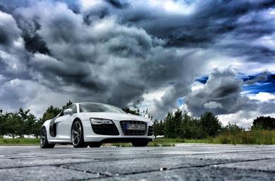 Keywords: audi r8 sports car thunder thunderstorm flash weather sky clouds rain forward summer thunderstorm background energy