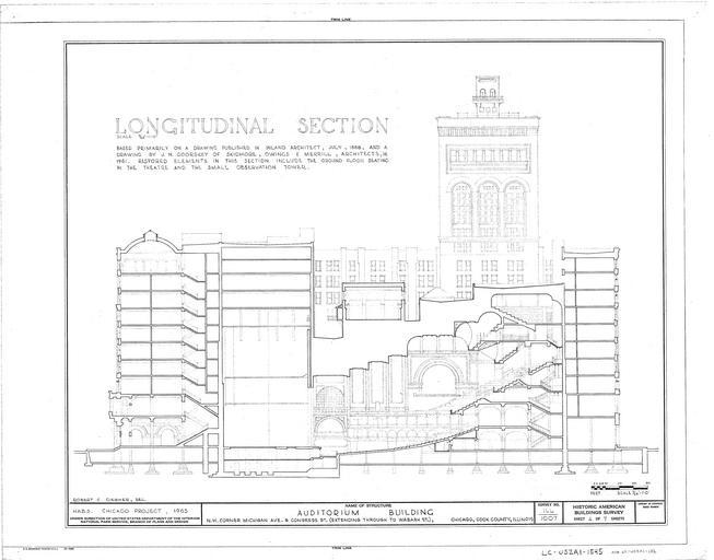 | Keywords: Auditorium Building3.JPG Auditorium Building Chicago Elevation Retrieved from HABS/HAER website http //lcweb2 loc gov/pp/hhquery html specifically http //memory loc gov/cgi-bin/ampage collId pphhphoto fileName il/il0000/il0091/photos/browse db action browse recNum 0 title2 Auditorium 20Building 20430 20South 20Michigan 20Avenue 20Chicago 20Cook 20County 20IL displayType 1 itemLink D hh 5 /temp/~pp_dQl8 on 12 October 2006 1963 Kasprzyk Mark delineator Library of Congress Historic American Buildings Survey / Historic American Engineering Record PD-USGov PD-USGov PD-USGov-Interior-HABS Auditorium Building Chicago HABS Theater sections Buildings in Illinois |