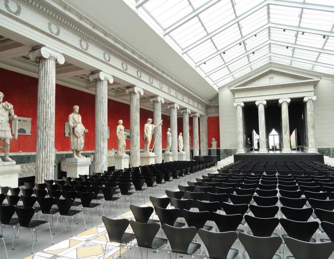 Keywords: auditorium seating stage lighting lights ornate beautiful hall ceiling statues monuments columns decor artistic copenhagen denmark interior architecture