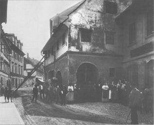 Keywords: Auerjeva hiša in gostilna Pri Wagonu na Wolfovi 1895.jpg Auerjeva hiša in gostilna Pri Wagonu na Wolfovi 2813 1895 author PD-Slovenia Photographs after the 1895 Ljubljana earthquake Historical images of Wolf Street
