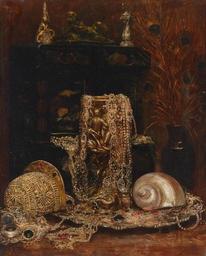 Keywords: August Pollak Stilleben mit Schmuck.jpg Stillleben mit Schmuck Muschel und Pfauenfedern Signiert und datiert A Pollak 1 907 Still life with jewellery 1907 oil canvas cm 68 5 55 Gallery Accession number Credit line Object history http //www dorotheum com Other versions PD-old-70 20th-century paintings location missing 1907 1907 paintings 1900s still-life paintings 20th-century oil paintings 1907 Conches in art Feathers in art Still-life paintings of jewellery 19 August Pollak Images from Dorotheum Peacock feathers Paintings with signatures Paintings with years of production artist |