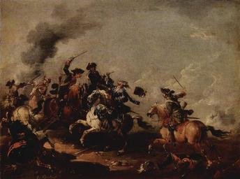 | Keywords: August Querfurt 002.jpg Artwork Creator August Querfurt title Battle scene Schlachtenszene 1730-1760 oil on canvas cm 32 43 St Petersburg Hermitage The Yorck Project 10 000 Meisterwerke der Malerei DVD-ROM 2002 ISBN 3936122202 Distributed by DIRECTMEDIA Publishing GmbH http //mail wikipedia org/pipermail/wikide-l/2005-April/012195 html Other versions PD-old-100 PD-Art-YorckProject History of cavalry through painting August Querfurt German paintings in the Hermitage Baroque paintings of war 18th-century oil on canvas paintings in Russia 18th-century paintings of cavalry in battle |