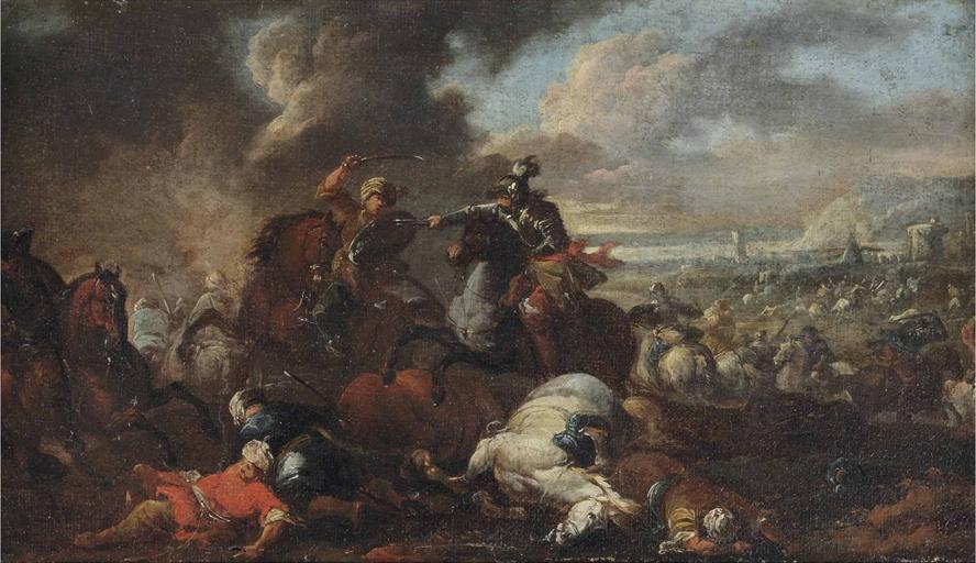 | Keywords: August Querfurt (circle) - A battle between knights and Ottomans.jpg Circle of oil canvas cm 23 4 40 5 accession number object history credit line 2012 12 PD-old-100 August Querfurt Battles of the Great Turkish War Sieges involving the Ottoman Empire 18th-century paintings of cavalry in battle Baroque paintings of war |