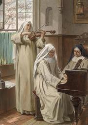 Keywords: August Wilhelm Roesler Musik im Kloster.jpg Musik im Kloster title verso A Roesler signature oil on canvas 100 x 73 cm http //www dorotheum com/ dorotheum com century 19 August Wilhelm Roesler 1837 “ PD-old Images from Dorotheum August Wilhelm Rösler Musical trios in art Paintings of nuns Paintings of women at the piano |