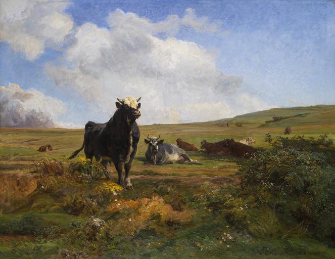 Keywords: Auguste Bonheur - Chef de la harde.jpg Artwork Creator Auguste-François Bonheur Leader of the herd 1862 oil canvas cm 114 3 146 1 object history Dixon Dixon New Orleans; Acquired from the above by the late owner credit line A Bonheur ~ lower right signature accession number http //www sothebys com/en/auctions/ecatalogue/2011/old-master-and-19th-century-european-art-n08761/lot 298 html Sotheby's New York 10 June 2011 lot 298 PD-old-100 Auguste-François Bonheur Paintings of cattle 1862 paintings Images from Sotheby's |