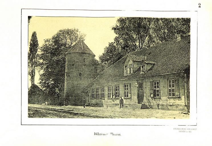 Keywords: Aus Hannovers Vorzeit. Ein Beitrag zur deutschen Cultur-Geschichte ... Mit 23 photolithographischen Abbildungen, etc., 002 Döhrener Thurm (Döhrener Turm, Fotografie um 1883 und früher).jpg Fotolithografischer Druck einer 1883 oder früher aufgenommen Fotografie der Kaffeewirtschaft Döhrener Turm Das Bild Foto eines noch unidentifizierten Fotografen mit der Seiten - Nummer 2 entstammt dem von Historiker August Jugler 1833-1888 herausgegebenen Buch Aus Hannovers Vorzeit Ein Beitrag zur deutschen Cultur-Geschichte Mit 23 photolithographischen Abbildungen etc und wurde ursprünglich 1883 von der Aubeldruck-Anstalt Aubel Kaiser Lindenhöhe 38 b bei Cöln gedruckt Das hier zu sehende Digitalisat wurde im Rahmen einer umfangreicheren Aktion der British Library auf der Plattform Flickr hochgeladen anstatt direkt hier bei Commons von dort in höchstmöglicher Größe heruntergeladen dann mit einem Foto-Bearbeitungsprogramm per Autokontrast abgedunkelt und endlich hier hochgeladen Der Begleittext aus dem Buch fehlt noch - und enthält möglicherweise den Hinweis auf den ursprünglichen Fotografen und das genaue Entstehungsdatum des Fotos Sicher ist auch ein besserer Scan möglich und - langfristig gedacht - finden wir möglicherweise das originale Foto für ein bestmögliches Digitalisat http //www flickr com/photos/britishlibrary/tags/sysnum001910891 ~ 1883 unidentified photgrapher; reprint by Aubeldruck-Anstalt Aubel Kaiser Lindenhöhe 38 b bei Cöln PD-old Aus Hannovers Vorzeit Ein Beitrag zur deutschen Cultur-Geschichte Mit 23 photolithographischen Abbildungen etc von August Jugler Images from the British Library Mechanical Curator collection Döhrener Turm Hannover Unidentified photographers in Hannover |