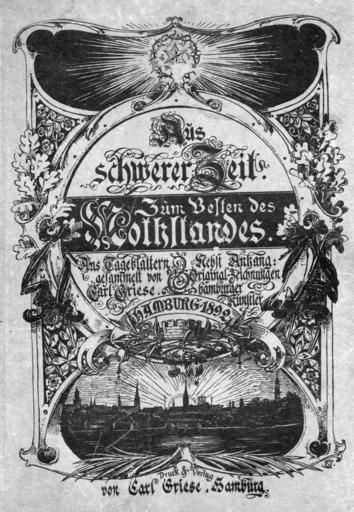 Keywords: Aus schwerer Zeit.jpg en Book title from Hamburg Germany de Titel des Buches Aus schwerer Zeit über die Choleraepidemie in Hamburg 1892 Scan vom Buch Carl Griese 1892 Carl Griese 1892 Hamburg cholera outbreak 1892 book covers Books about Hamburg PD-old |