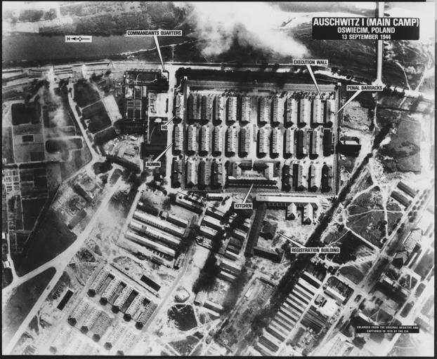 | Keywords: Auschwitz I (Main Camp) - Oswiecim, Poland - NARA - 305903.jpg Scope and content General notes 305903 Local identifier 263-AUSCHWITZ-19 10 National Security Council Central Intelligence Agency Directorate of Intelligence National Photographic Interpretation Center 1961 - 1973 464th bomb group 15th USAAF http //web archive org/web/20090324043355/http //www zplace2b com/464th/sortie htm Cartographic and Architectural Records Section Special Media Archives Services Division NWCS-C National Archives at College Park 8601 Adelphi Road College Park MD 20740-6001 1944-09-13 Record group Record Group 263 Records of the Central Intelligence Agency 1894 - 2002 Record group ARC 590 Aerial Photography of Auschwitz Concentration Camp compiled 1973 - 1973 documenting the period 1944 - 1945 Series ARC 305893 File unit File unit ARC Variant control numbers NAIL Control Number NWDNC-263-AUSCHWITZ-19 10 Other versions <gallery> File Auschwitz_I_ Main_Camp _-_Oswiecim _Poland_-_NARA_-_305903 tif tif File Auschwitz_I_ Main_Camp _-_Oswiecim _Poland_-_NARA_-_305903 jpg jpg </gallery> NARA-cooperation PD-USGov Auschwitz I aerial photographs 19440913 The Holocaust 1944 1944 in Poland |