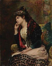 Keywords: Ausencia, de Francisco Díaz Carreño (Museo del Prado).jpg El lienzo llamado Ausencia representa a una mujer ausente y pensativa 1886 Oil on canvas cm 70 55 Institution Museo del Prado https //www museodelprado es/coleccion/galeria-on-line/galeria-on-line/obra/ausencia/ https //www museodelprado es/coleccion/galeria-on-line/galeria-on-line/obra/ausencia/ PD-old-100 other versions Uploaded with UploadWizard Francisco Díaz Carreño 19th-century paintings in the Prado Museum 1886 paintings |